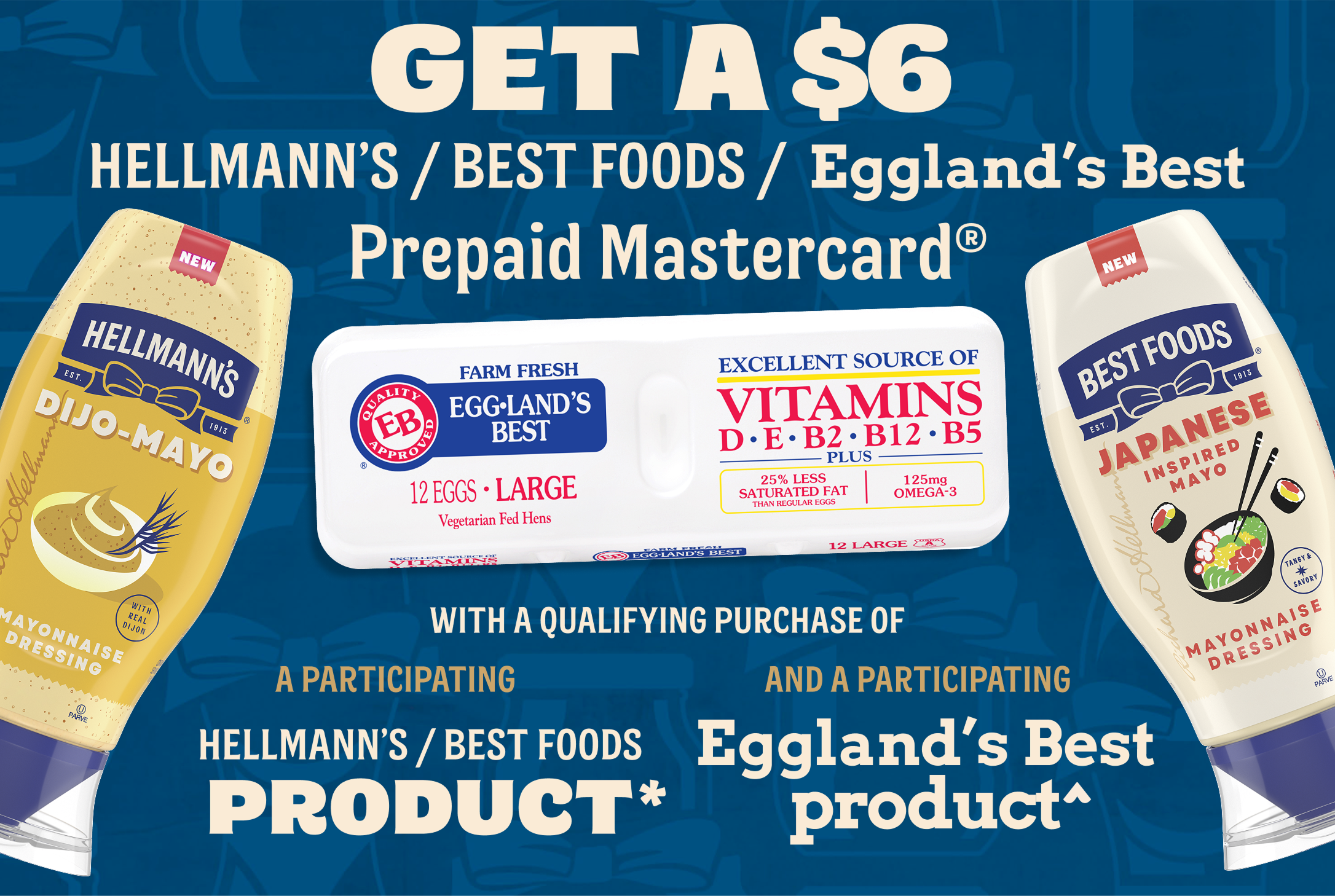 BUY Hellmann’s / Best Foods Dijo-Mayo or Japanese Inspired Mayo AND Eggland’s Best hard shell or hard cooked peeled egg product in a single transaction between April 15th, 2026 & May 31st, 2026